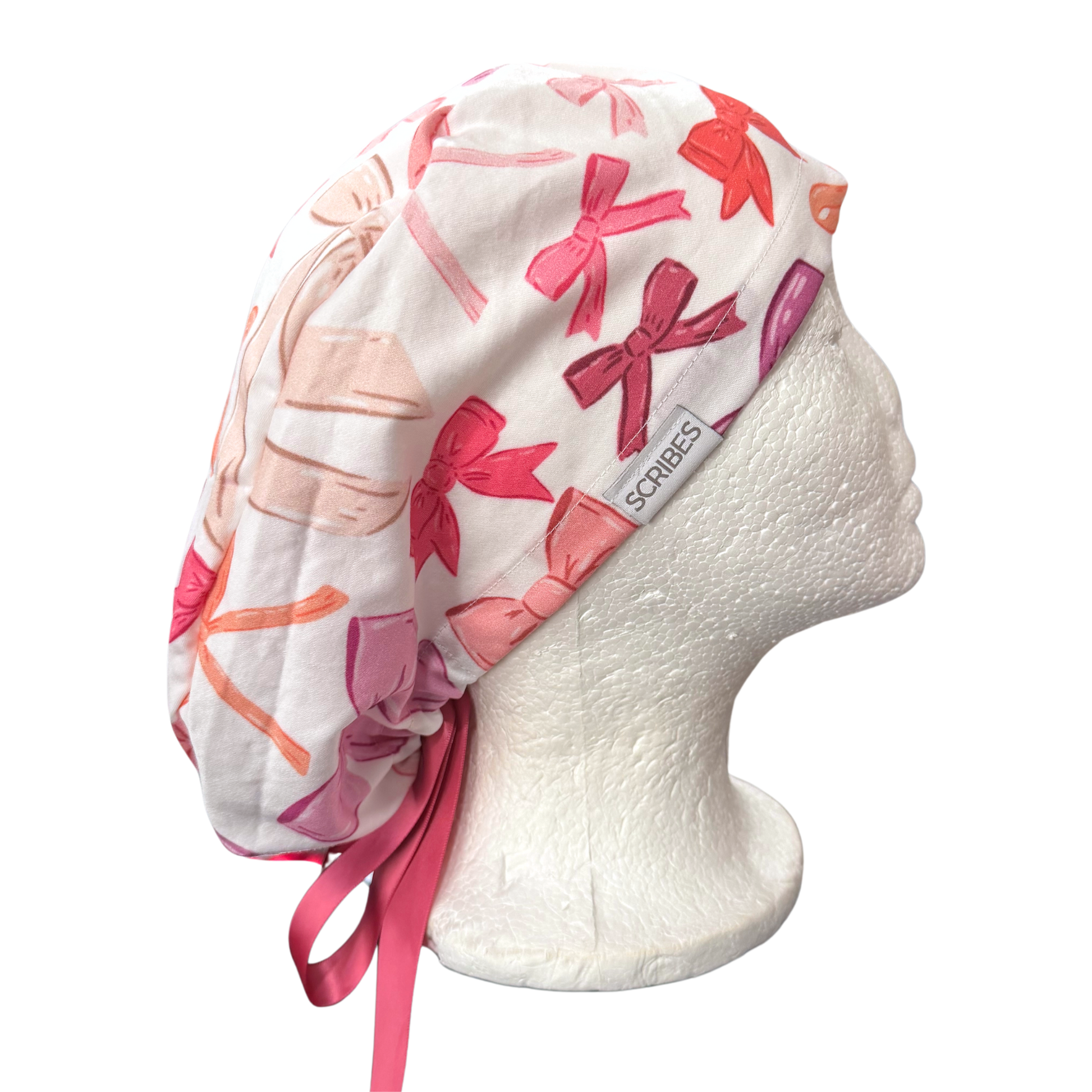 Bows in Pinks and Purples Pony Style Scrub Cap