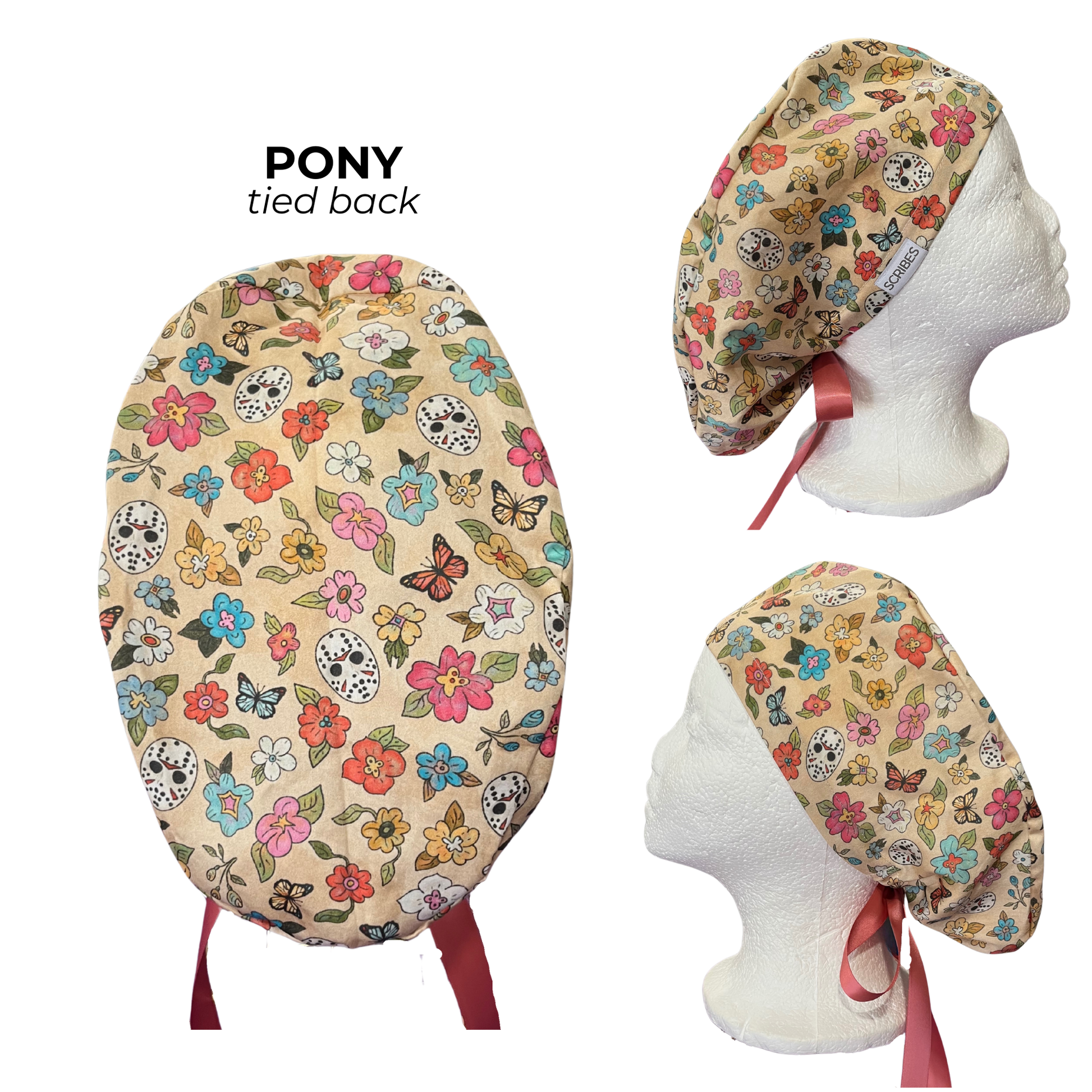 Dusky Cystal Lake horror movies Halloween in Pony Scrub cap