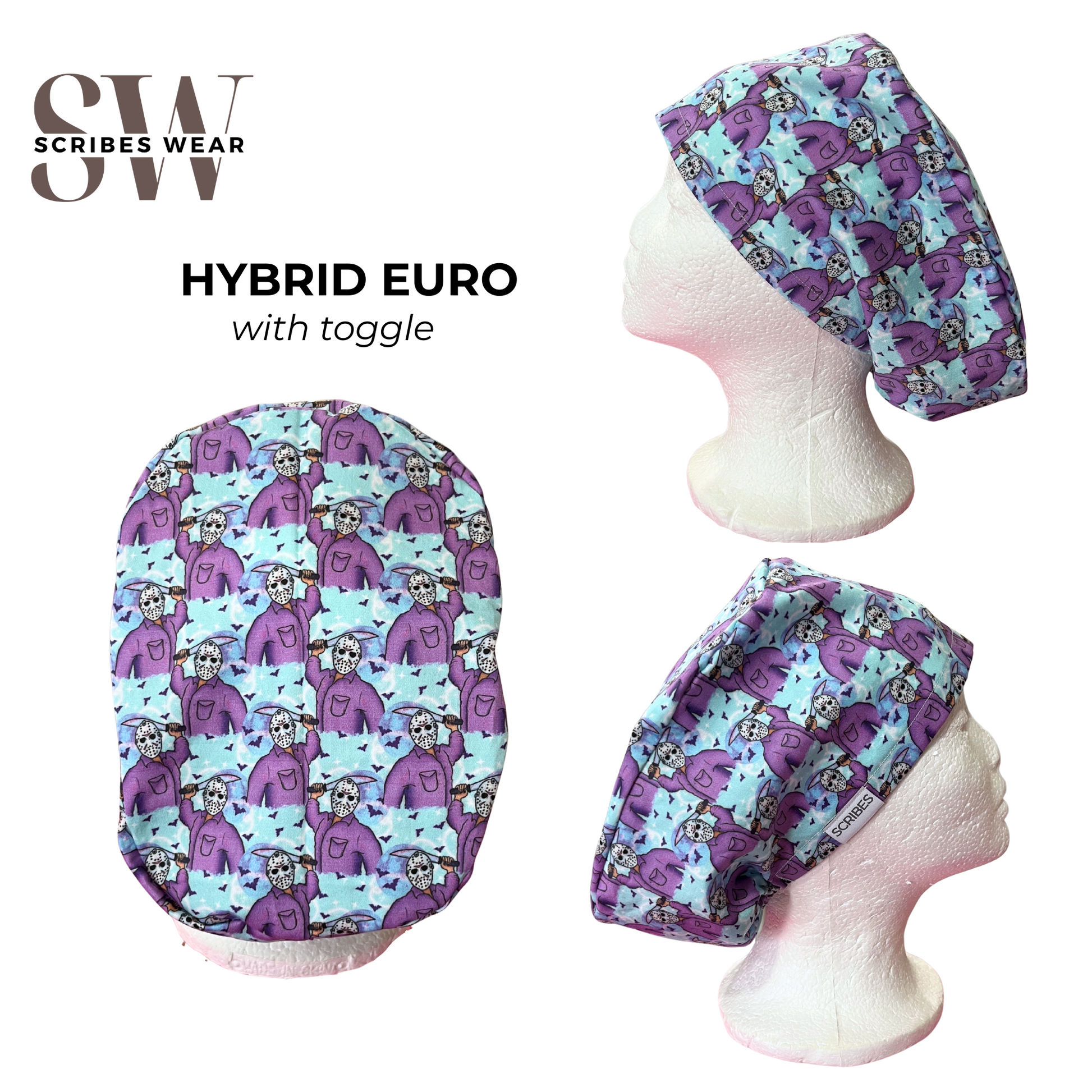 Euro Love Style: Inspired by the same size & fit of the standard OR surgical scrub cap with an elastic and toggle to adjust the scrub cap fit.