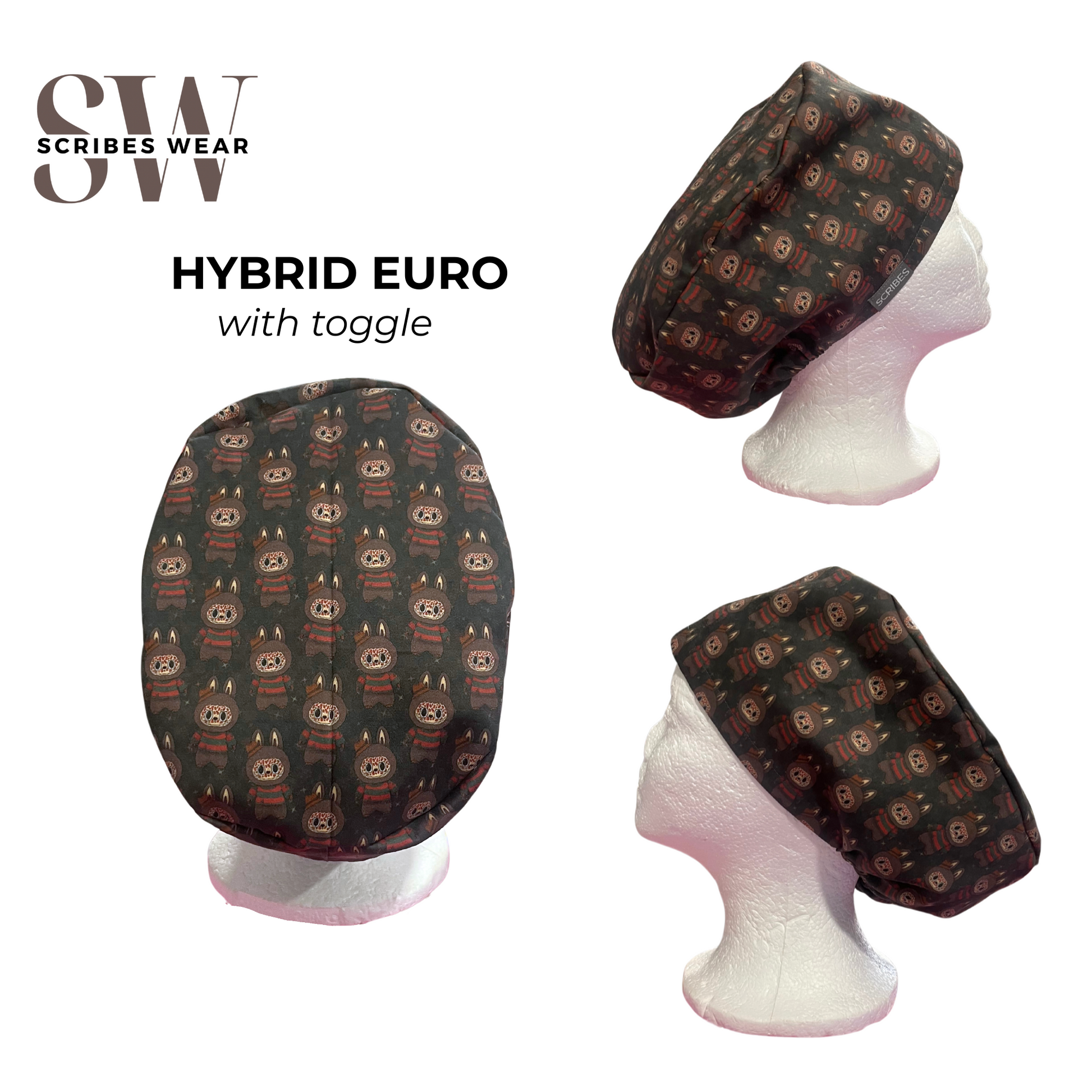 Euro Love Style: Inspired by the same size & fit of the standard OR surgical scrub cap with an elastic and toggle to adjust the scrub cap fit.